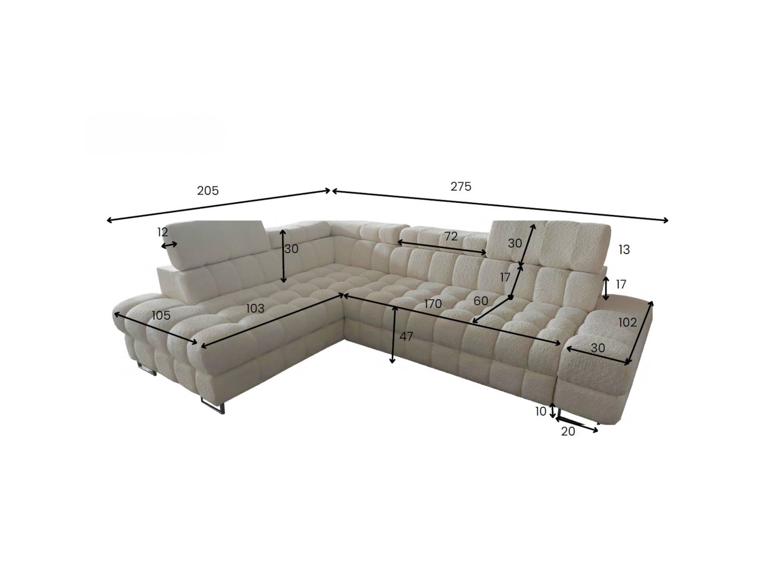 Nice yra kampinė sofa tiems, kurie nori aukštesnio komforto lygio, bet kartu nori ir realių funkcijų. Reguliuojami galvos atlošai leidžia susireguliuoti patogiausią pozą, T30 putos ir banguotos spyruoklės užtikrina kasdienį komfortą ir ilgaamžiškumą, o miegojimo funkcija su delfin mechanizmu ir patalynės dėžė padaro sofą maksimaliai praktišką. Jei ieškote modernaus, patogaus ir funkcionalaus sprendimo svetainei, Nice yra taiklus pasirinkimas